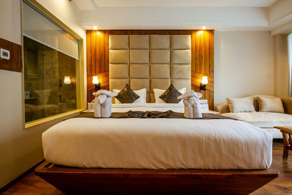 Delüks odalarımız, daha fazla alan ve konfor sunar. Ayrı bir oturma alanı ve geniş bir banyo ile rahatlığın tadını çıkarın. Günlük fiyat: 450 TL. Günün her saatinde sizi bekliyoruz! Tüm ihtiyaçlarınızı karşılayacak imkanlara sahip. Göz alıcı tasarım ile konuklarına hitap ediyor. Oda Detayları: Lüks yatak, büyük ekran TV, minibar, banyo ve duş imkanı. Görselimiz: 1. 2. 3. 4. 5.